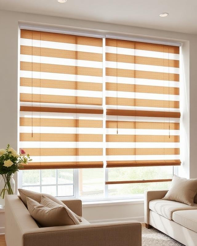 Day & night blinds that give you complete control over light and privacy. Our zebra blinds feature alternating sheer and solid fabric stripes that can be aligned to filter light softly or block it completely. The innovative design adds a contemporary touch to any room while offering maximum flexibility.